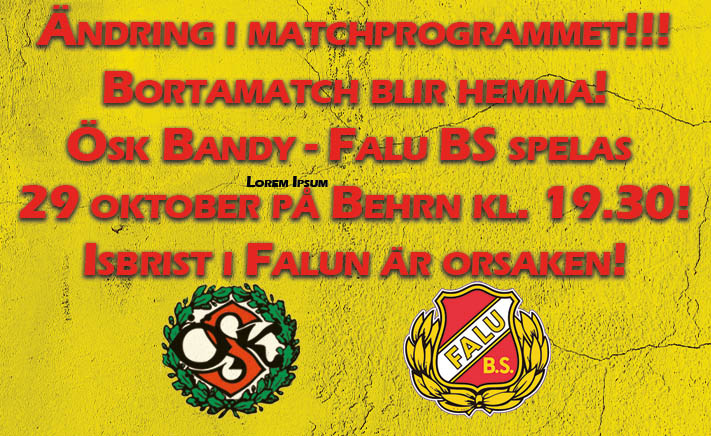 Ösk´s bortamatch mot Falu BS har blivit en hemmamatch!