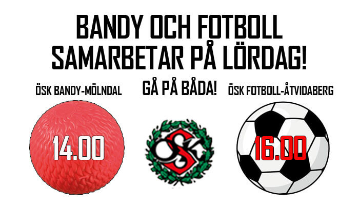 Börja dagen med att heja fram ÖSK Bandy i säsongens sista hemmamatch mot Mölndal kl 14 för att sen fortsätta på herrlagets träningsmatch mot Åtvidaberg kl 16.